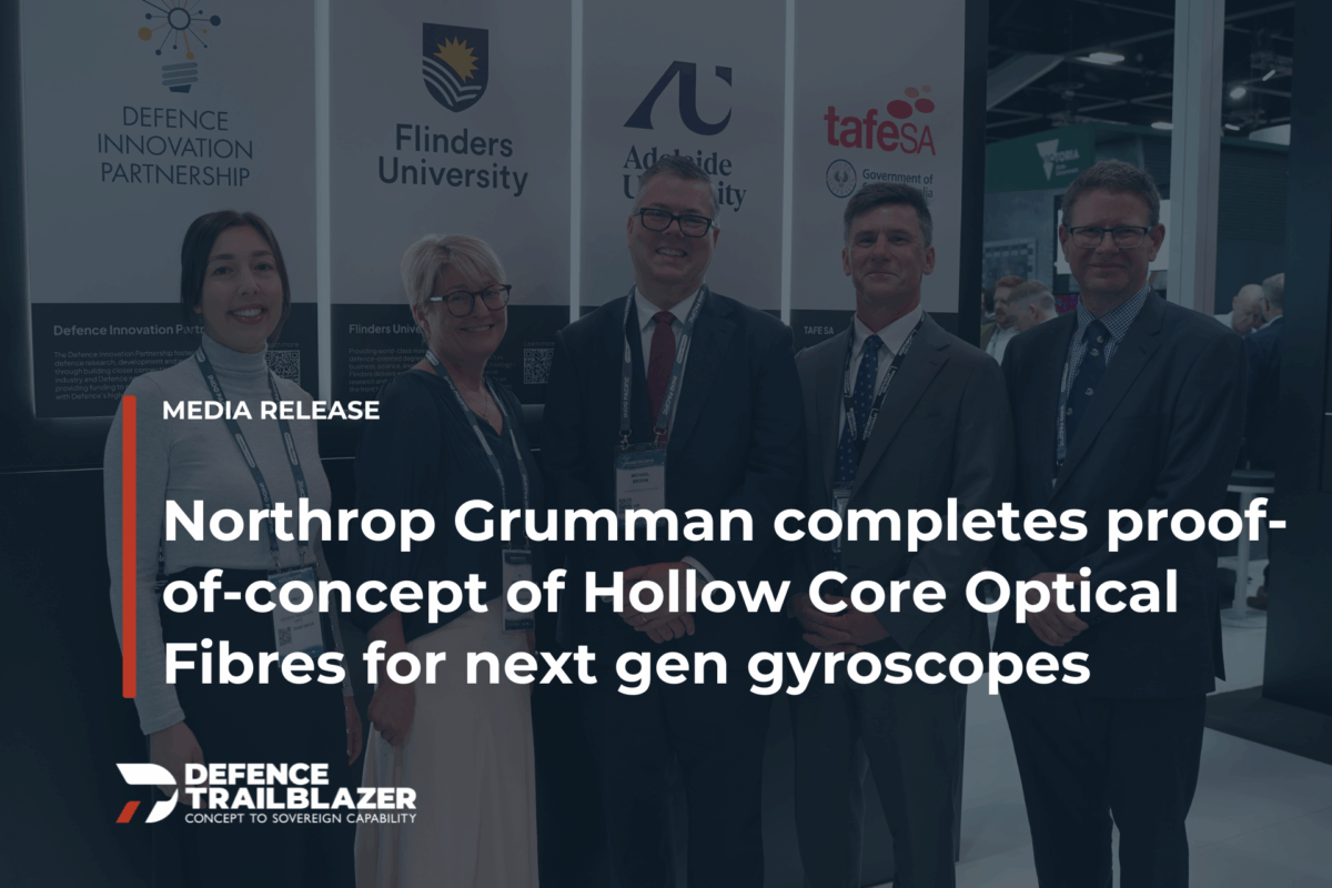 Northrop Grumman celebrates the successful completion of the proof-of-concept phase of its Hollow Core Optical Fibre project, delivered in partnership with the University of Adelaide and supported by funding from Defence Trailblazer’s Technology Development & Acceleration portfolio.